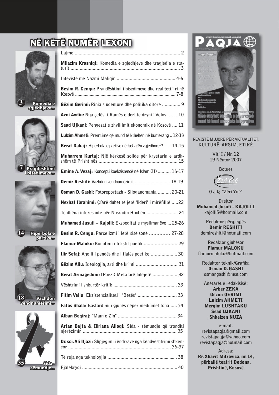 Intevistë me Nazmi Maliqin ……………………………………… 4-6